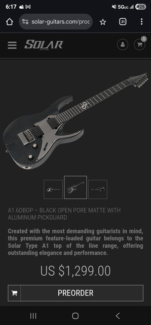 I generally find guitars with pickguards prettier than ones without. So I really like this new Solar. I have enough guitars at the moment, but if I were looking for one, this would definitely be a hot contender. Ola is just killing it in the metal sector. I am unaware of any other brand that strikes such an excellent balance between class and total metal.